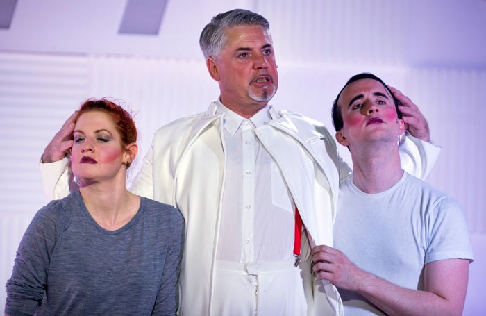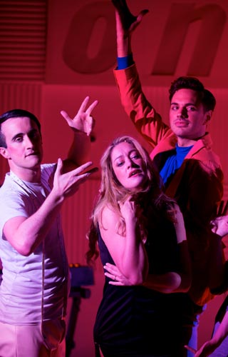 Here though, now married, they’re dragged from the audience as reluctant guests on a TV show (TV meaning television…) and forced to confront their marital difficulties as increasingly sinister characters manipulate them both metaphorically and literally. You see the similarities? Poor Brad (Ben Kerr) spends most of the time unscrupulously drugged, and either offstage or being subjected to the eponymous shock treatment, but Janet (the extraordinary Julie Atherton) develops before our eyes from timid home maker through flirt in a Little Black Dress to fetish nurse in a white vinyl one, a progression which, in the 1970s logic of the O’Brien world is apparently a good thing.
