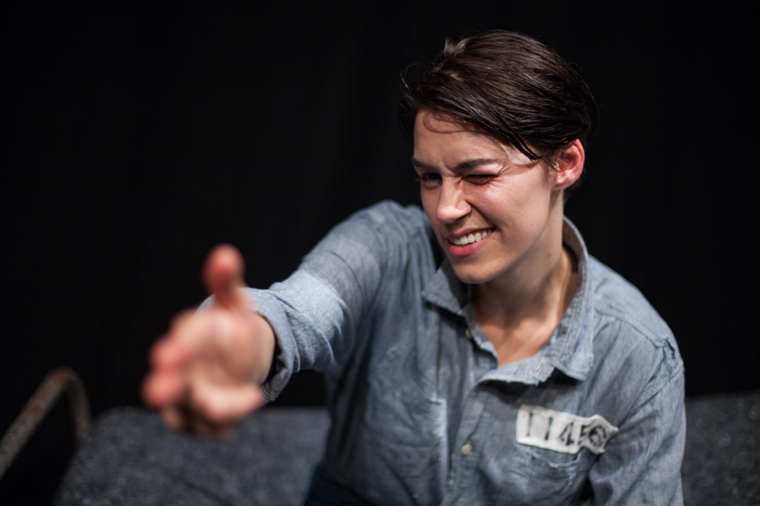 It is clear early on that It is not just Elyese who is speaking to us but another persona altogether. The boyish charm and sexually charged persona of John Hayes (Elyese’s father) can be identified by the intense glare that she throws as she locks eyes with the audience.Throughout the jumbled monologue of Hayes we also see glimpses of Elyese’s impassioned and emotive nature. However just like Hayes,Elyese is a flawed character.Having suffered abuse at the hands of domineering men in her life, she has buried herself deeper and begun to take on the persona of her commandeering father John Hayes.