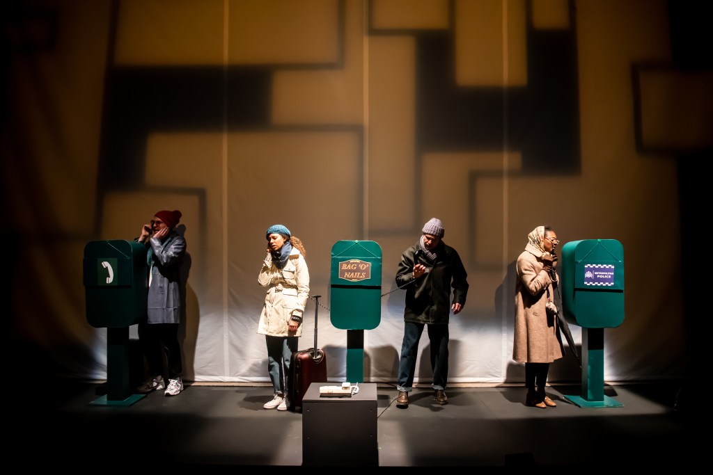 During rehearsals for this production of Michael Frayn’s collection of short plays and sketches, the playwright apparently wrote to the director to query whether the various technological devices which conspire to confound and torment his characters were now too outdated for modern audiences to either understand or relate to. Luckily his fears were unfounded, as the situations prove timelessly hilarious, and audiences will, I have no doubt, be readily able to map across to the similar issues arising in our own, still more technologically-dependent times.