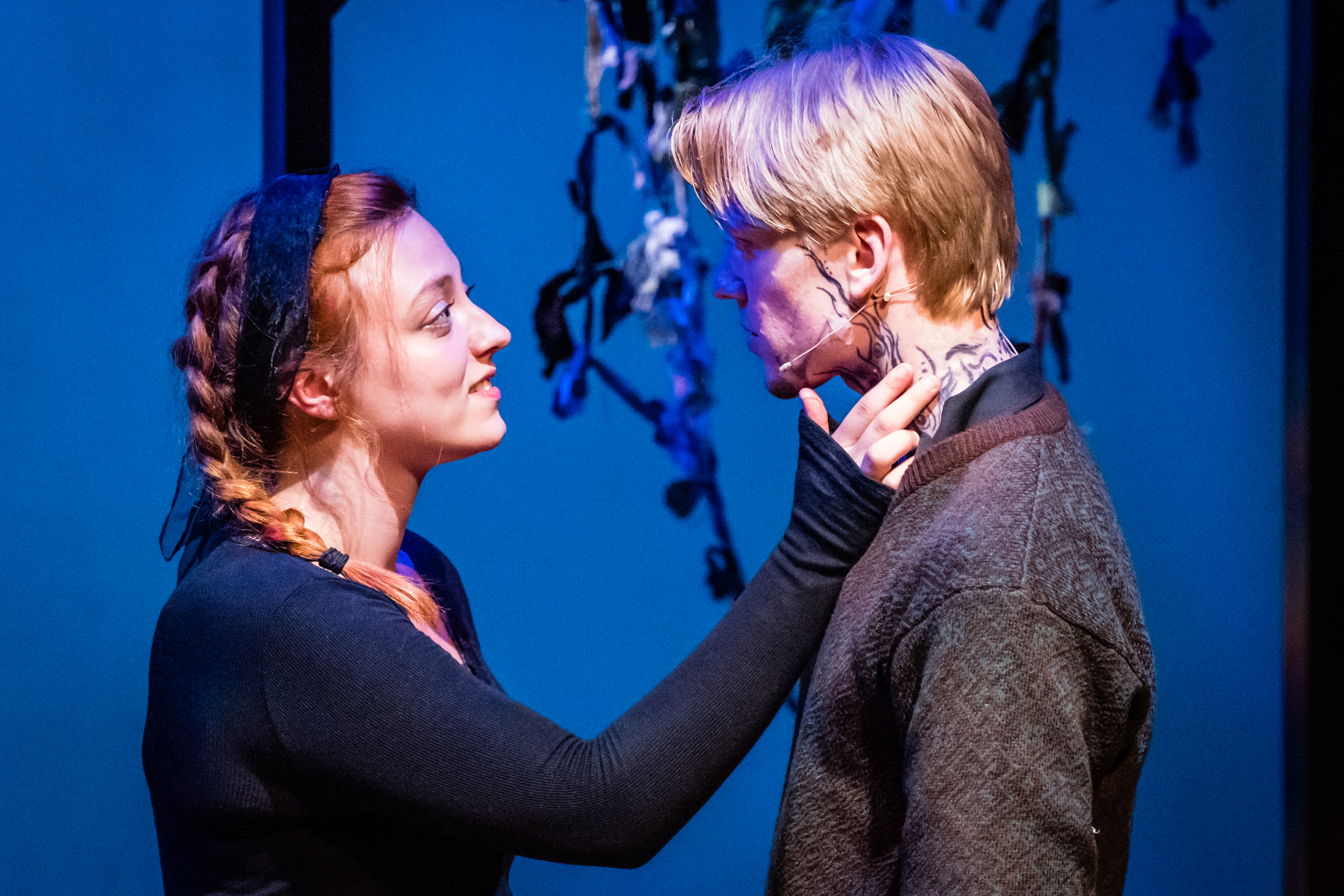 The premise of this new musical retelling of the Persephone story (written by Emma Hawkins with music by Carrie Penn) is to take the various versions of the myth and reimagine it for our time. As such, the costumes and design suggest a timeless present – there are no togas or Greek columns in evidence, for example. Apart from a striking assemblage of tattoos on Hades’ face, hands and neck the overall look is decidedly ordinary. The set, too, is minimalist, with doorframes hung with flowers to indicate woods and gardens. The downside of this approach is that it makes it difficult to identify one’s location – Olympus, the Underworld and Earth all end up looking much the same, and much laborious furniture moving is required to indicate a change of scene. There is also less of a sense of what is at stake for Persephone to be removed to the Underworld. We also lost something of the basic sense of the original story – if one approached it knowing nothing of any versions of the myth, it would be a struggle to follow at times.
