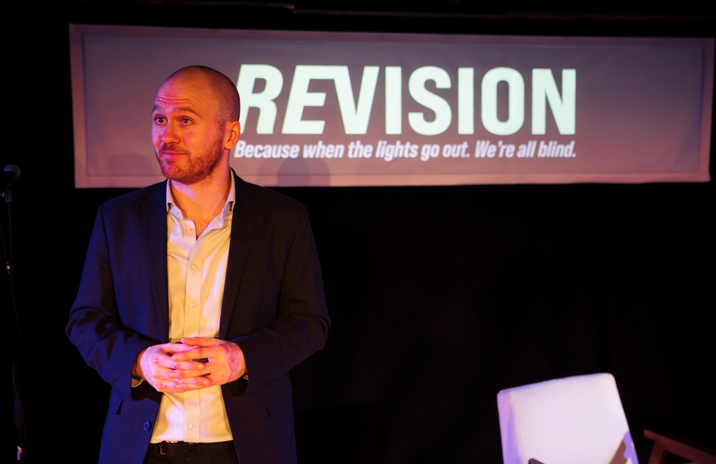 At its core is a rollicking, no-holds-barred satire involving a PR company’s attempts to fight back against a charge of ‘ableism’. Disabled talent managerTim (Brewer) sees an opportunity and persuades influencer Ross (Mehrabani), brown, gay and blind, to work with him to make blindness sexy. Their strategy is all too successful and the inevitable consequence is played out in a horrific audio described video clip. The tone shift is stark but brilliantly handled – the fact that it is audio-described rather than visual makes it all the more powerful. The debate that ensues about being blind is never resolved, perhaps it can’t be. The evening ends on an inclusive note again, with tattoos and tweets at the ready to ensure that the show gets the four star minimum reviews that it so richly deserves.