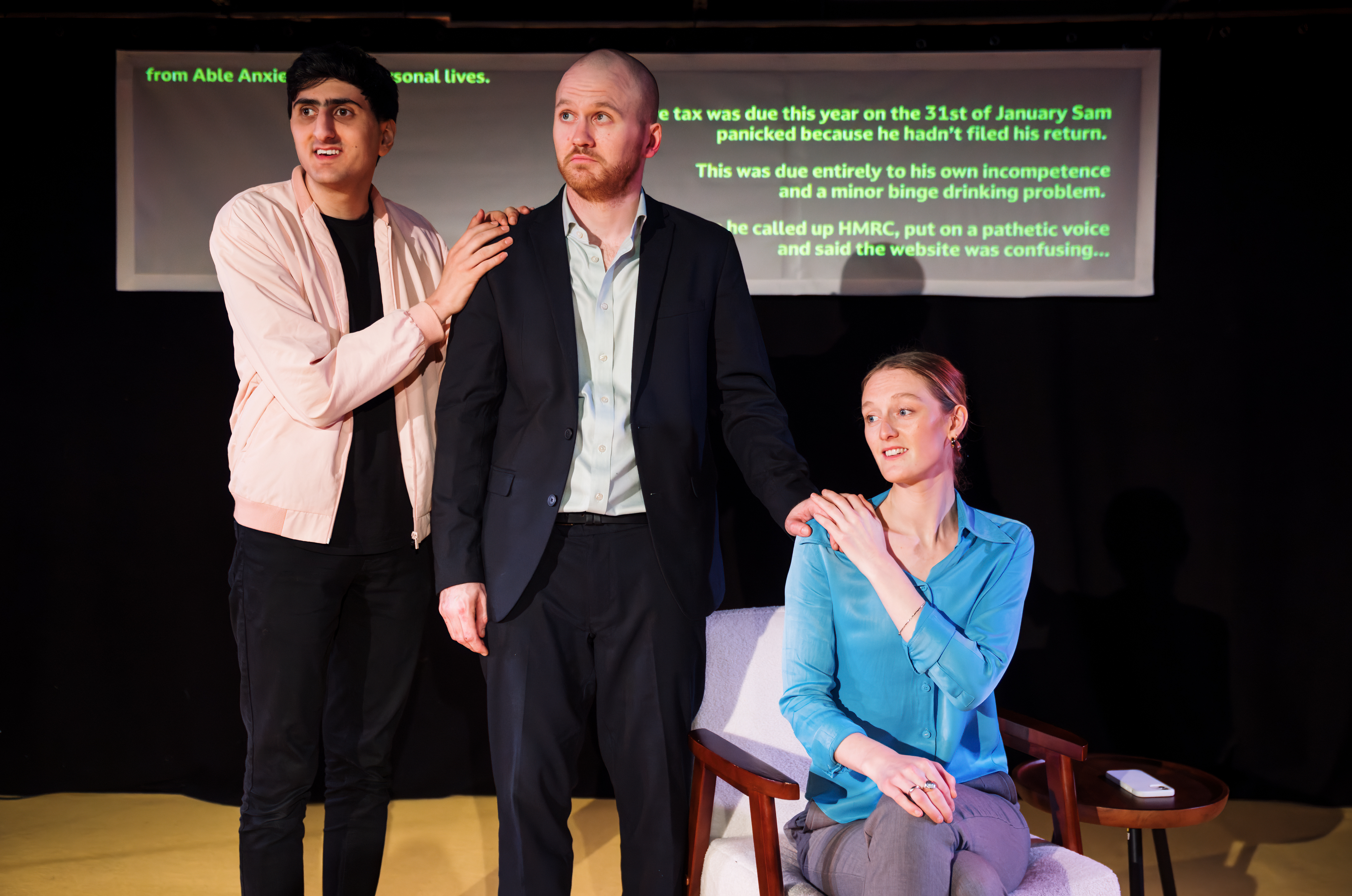 Following a brief run as part of The Vaults Festival in February, this show comes to the Soho Theatre as a slick, well-worked production. Flawbored are a disability-led company, made up of the night’s performers, Samuel Brewer, Aarian Mehrabani and Chloe Palmer, and they are determined to prove the truth of their motto that ‘access is easy, if you care’. If that sounds worthy, even dull, this show is anything but. It manages the seemingly impossible feat of being hilariously funny, thought-provoking and cringemaking all at the same time. It lampoons what might be called the accessibility/inclusivity industry while also showing how important a genuine effort to include everyone is, as well as how easily it can fail.