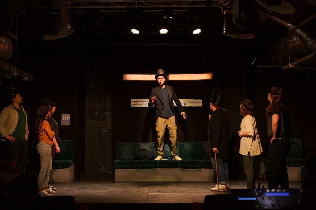 The Turbine Theatre is built into the railway arches next to the new Battersea Power Station development. With the noise of trains rumbling past at intervals and a definite subterranean feel in the architecture, there could hardly be a more appropriate setting for this London Underground-centred comedy written by Tom Woffenden and Hamish Clayton. To be precise, it is set on the Piccadilly Line where two strangers – James (Saul Boyer) and Tory (Beth Lilly) – bump into each other on their long journeys from Heathrow to Cockfosters. Setting itself up as a kind of meet-cute, Sliding Doors-style romcom, it doesn’t take long before a more madcap and surreal energy bursts through. The romcom plot does play out, just surrounded by ever more bizarre interventions, including an audience interactive Tube-based game show. As Tom and Tory continue to insist that they are not together, we know what will happen by the time they reach the end of the line.