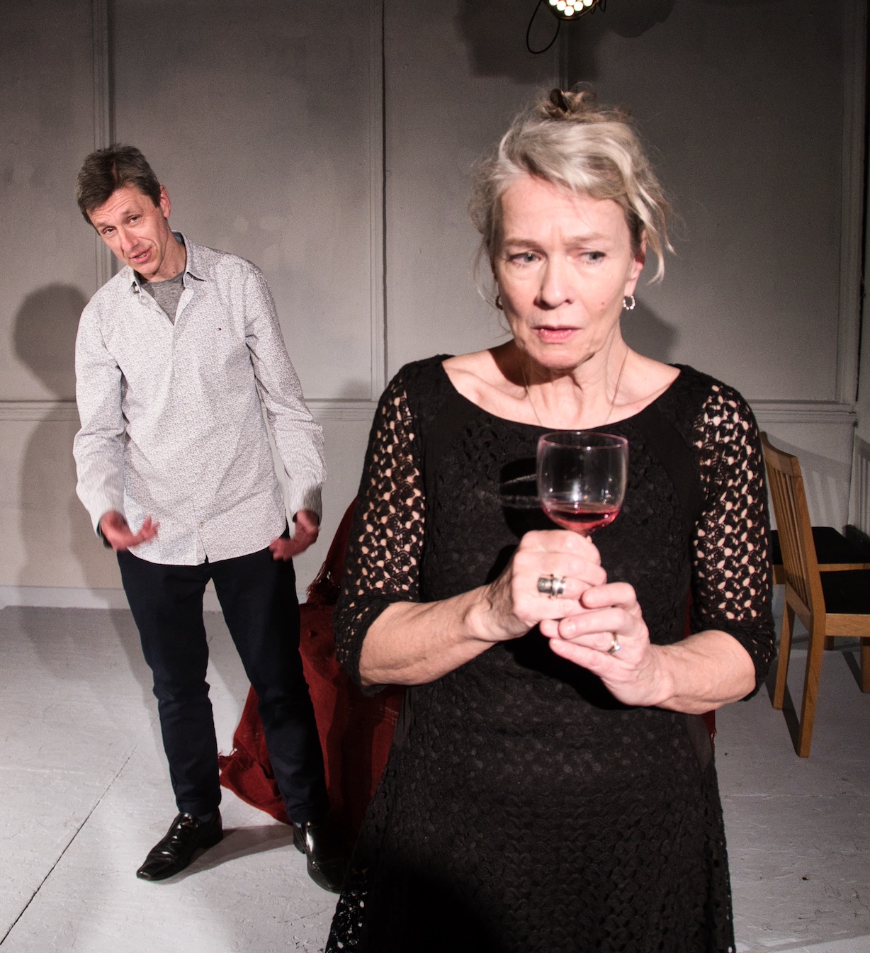 This is not to say that the evening is unenjoyable. On the contrary, there are some very funny moments, and the ending was rather touching. However, there were points at which I felt the confines of the small space and limited budget had a detrimental effect. For example, the play seems to take place over a period of several weeks, but that wasn’t really obvious as the set never changed and there was not enough marking of time passing. The romance at the heart of the play between Millicent (Louise Bangay) and Ben (James Price) also suffers from this – we see their very first meeting, but we don’t really get a sense of their relationship deepening over time. There is no real chemistry between the two leads, although Louise Bangay strikes a nicely observed balance between Millicent’s conflicting desires for adventure and security.
