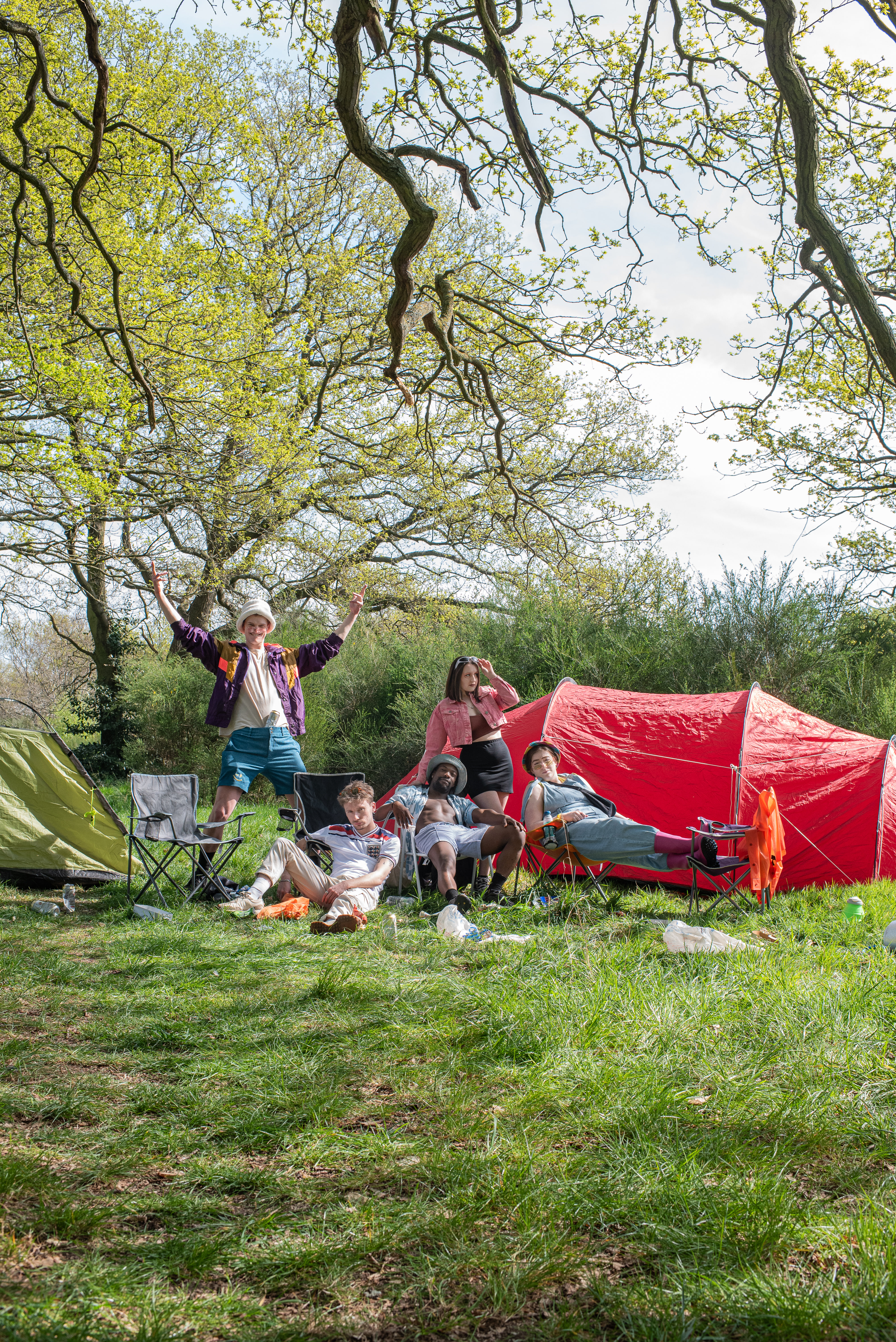 The set consists of a row of three tents, amateurishly assembled, some ramshackle camping chairs and many, many cans of beer. The five-strong friendship group in their mid- to late-twenties consist of Jordan (Tom Feasby), Daisy (Georgia Dye), her boyfriend Jason (Tafadzwa Phillip Madubeko), and Marvin (Alistair Rowley) with his fiancée Lisa (Marnie Yule). They are soon joined by an old schoolfriend of Jordan’s, Jo (CJ), who also happens to be at the festival. This allows us to be introduced and it becomes clear that this weekend is a blessed relief for them – most of their everyday lives are tedious and directionless, but at BuzzFest, all of that can be forgotten.