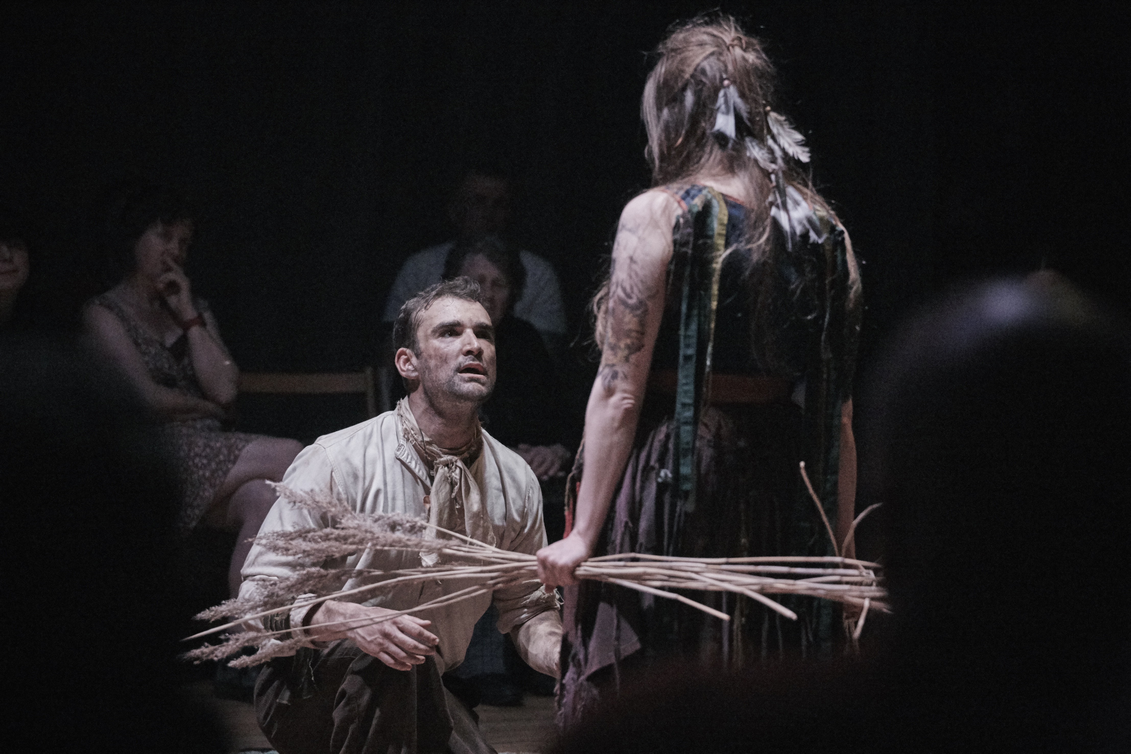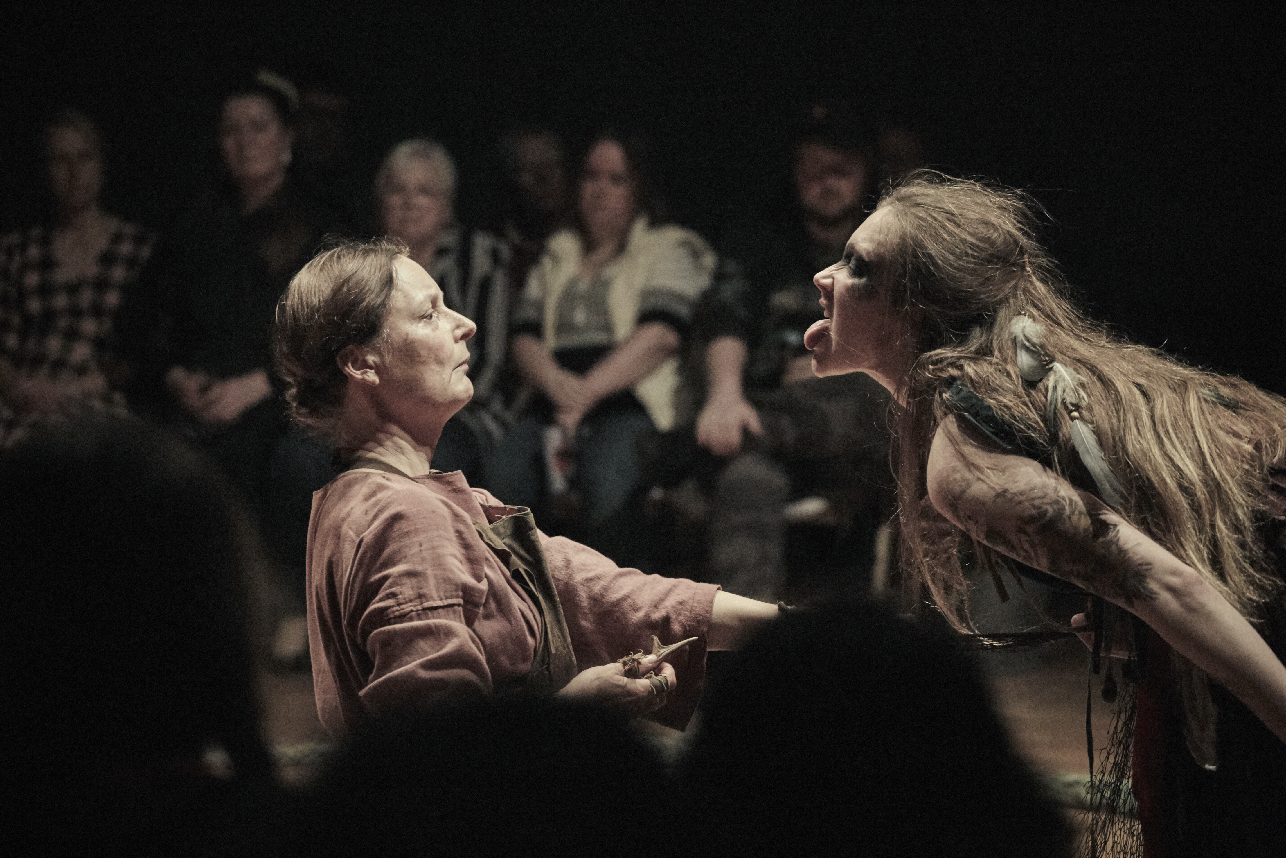 Like a Grimm fairy tale before bowdlerisation, the story is uncompromising and at times deeply unsettling. It is acted with utter conviction by all three players – this really feels like it is their story. At times it feels like a re-enactment of an ancient tale, as though to ward it off – Hopkins has referred to it as ‘ritual theatre’ and there are many ritualistic elements here – the rope, the enchanted circle, the rhythmic tapping, the music and movement. It feels true to what life must have been like, and the ways people would have found to make their lives more bearable. If you succumb to its darkly magical powers, you may find yourself transported to another world, one which is as far from our comfortable twenty-first century existences as it is possible to imagine.