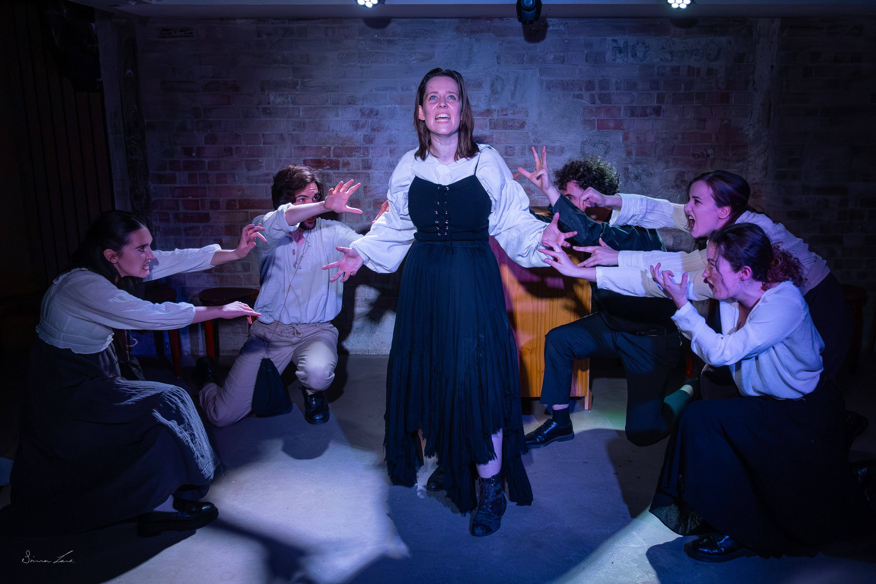 With all due respect to modern-day followers of Wicca, we would normally associate witches with either fairytales or the distant past. By contrast, ‘whistleblower’ is a much more recent term with connotations of corporate or professional wrongdoing. By juxtaposing the two, Arcana Theatre seem to be inviting us to see the parallels between the story they are telling and our own times. The Witch and The Whistleblower is a hugely ambitious project – they have taken a snippet of recently-discovered history and turned it into a full-blown folk musical. With book and lyrics by cast members Roo Berry, Megan Farquhar, Lauren Foreman and Tia Ray, and music by Jake Dufton and Ell Thompson, they fill the notoriously tiny space of The Glitch to the brim. Director Evie Kerr does a magnificent job in managing the entrances and exits so that we remain focused on the story. As with all small venues with no allocated seating, however, there is a benefit in getting seats in the middle at the front for the best experience.